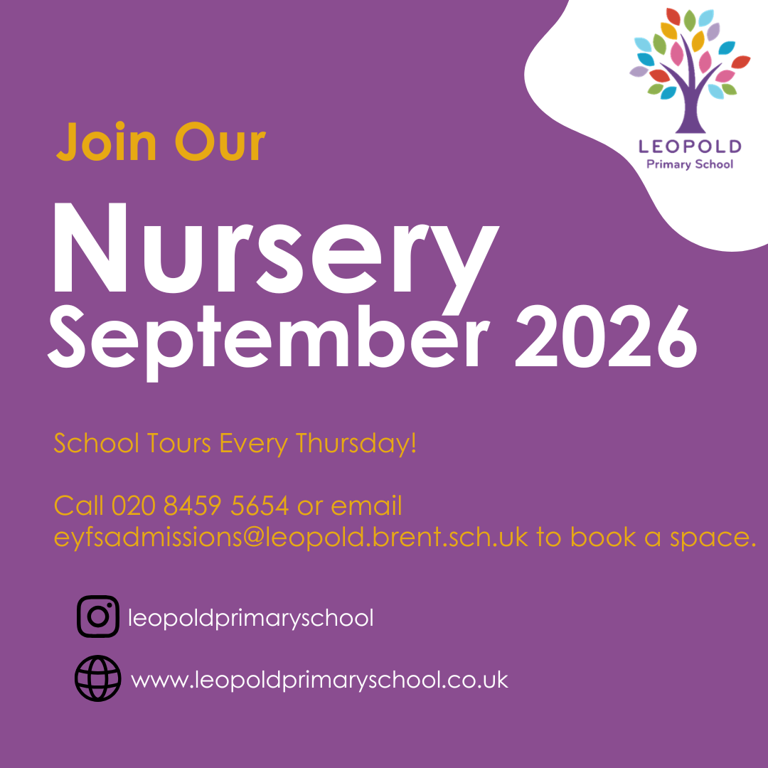 If you have any questions about our nursery, please email eyfsadmissions@leopold.brent.sch.uk